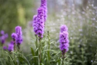 Die Ährige Prachtscharte ‚Kobold‘ (Liatris spicata) ist eine horstbildende, kompakte Staude, die von Juli bis August violette, in Ähren angeordnete Blüten bildet. An einem sonnigen Standort mit durchlässigem, humosem, lockerem, nährstoffreichem Boden erreicht sie gewöhnlich eine Höhe von ca. 40 cm und wird ca. 30 cm breit. Die Ährige Prachtscharte ‚Kobold‘ ist gut frostverträglich.