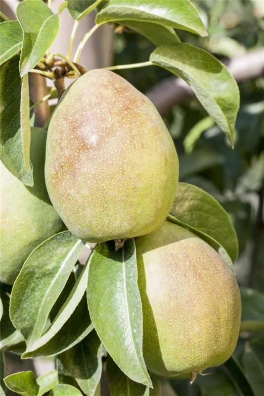 Die Birne ‚Köstliche von Charneux‘ (Pyrus communis) bildet gelb-grüne, große, feine Früchte. Sie sind oval und haben einen süßen, würzigen Geschmack. Für eine ertragreiche Ernte ab September schaffen lockerer, lehmiger Boden und ein sonniger bis halbschattiger Standort optimale Bedingungen. Auch ihre weißen Blüten sind eine schöne Erscheinung.
