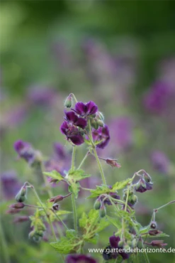 Geranium phaeum ‚Springtime‘ bildet purpurrote Blüten ab Juni.