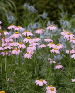 Die Bunte Garten-Margerite ‚Robinsons Rosa‘ setzt schöne Akzente gemeinsam mit: