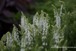 Salvia nemorosa ‚Schneehügel‘ bildet lippenförmige, in Rispen angeordnete, weiße Blüten ab Juni. Diese verströmen einen angenehmen Duft. Bei richtiger Pflege Nachblüte im September.