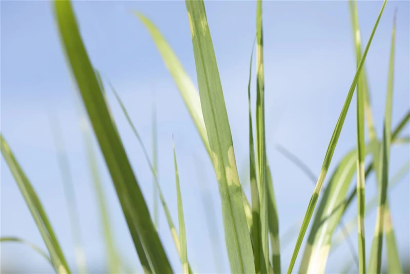 Hoher Blattschmuckwert. Die sommergrünen Blätter des Garten-Zebraschilfs sind gelb-grün, lineal.