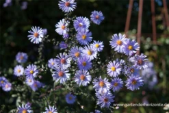Aster laevis ‚Calliope‘ bildet körbchenartige, blaue Blüten ab September. Diese verströmen einen angenehmen Duft.