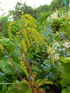 Chiastophyllum oppositifolium bildet glockenförmige, in Trauben angeordnete, gelbe Blüten ab Juni.