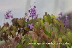 Epimedium grandiflorum ‚Lilafee‘ bildet sternförmige, violette Blüten ab April.
