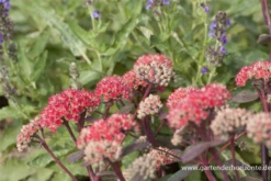 Sedum telephium ‚Red Cauli’® bildet in Dolden angeordnete, rote Blüten ab August.