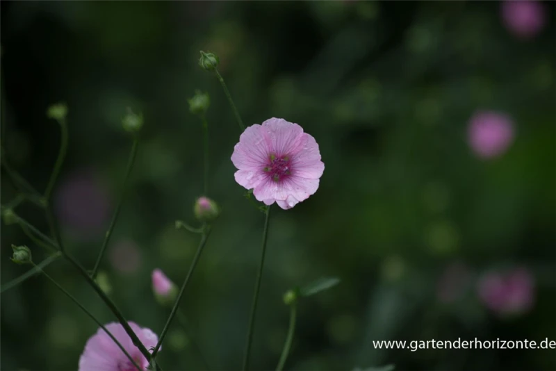 Althaea cannabina bildet schalenförmige, rosafarbene Blüten ab Juli.