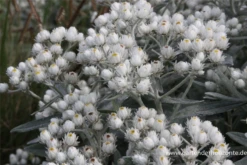 Anaphalis triplinervis bildet in Dolden angeordnete, silberweiße Blüten ab August.