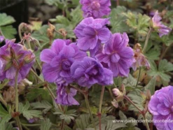Geranium himalayense ‚Plenum‘ bildet violette Blüten ab Mai.