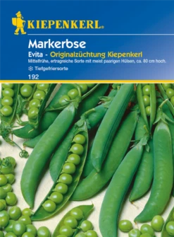 Die Markerbse ‚Evita‘ (Pisum sativum) bildet Samenkörner, die süß, aromatisch schmecken und bereits ab Juni geerntet werden können. Für das optimale Wachstum der Markerbse ‚Evita‘ werden ein sonniger Standort und durchlässiger, nährstoffreicher Boden benötigt.