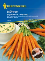 Die Möhre ‚Sugarsnax 54‘ (Daucus carota var. sativus) bildet Wurzeln, die aromatisch, süß schmecken und bereits ab Juni geerntet werden können. Für das optimale Wachstum der Möhre ‚Sugarsnax 54‘ werden ein sonniger Standort und durchlässiger, nährstoffreicher Boden benötigt.
