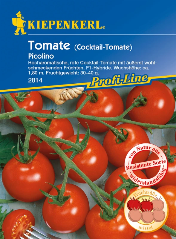 Die Tomate ‚Picolino‘ (Solanum lycopersicum) bildet kleine Früchte, die aromatisch schmecken und bereits ab Juli geerntet werden können. Für das optimale Wachstum der Tomate ‚Picolino‘ werden ein sonniger Standort und durchlässiger, nährstoffreicher Boden benötigt.