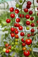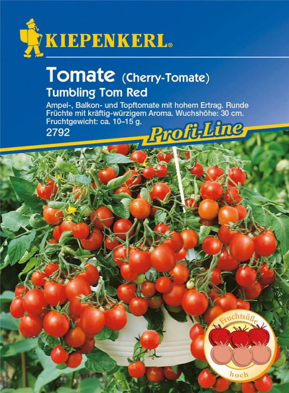 Der Tomate ‚Tumbling Tom Red‘ (Solanum lycopersicum) bildet kleine Früchte, die aromatisch schmecken und bereits ab Juli geerntet werden können. Für das optimale Wachstum des Tomates ‚Tumbling Tom Red‘ werden ein sonniger Standort und durchlässiger, nährstoffreicher Boden benötigt.
