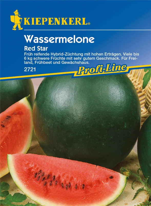 Die Wassermelone ‚Red Star‘ (Citrullus lanatus var. lanatus) bildet Früchte, die erfrischend, süß schmecken und bereits ab August geerntet werden können. Für das optimale Wachstum der Wassermelone ‚Red Star‘ werden ein sonniger Standort und durchlässiger, nährstoffreicher Boden benötigt.