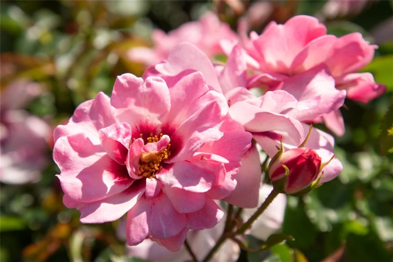 Die Persische Rose ‚Eye to Eye’® (Rosa) ist eine reichblühende Rose, die im Garten eine besondere Rolle spielt. Die Blüten sind rosa-rot und erscheinen zahlreich von Juni bis Oktober. Mit den richtigen Begleitern an ihrer Seite, kommt die Königin der Blumen besonders gut zur Geltung. Niedrige Stauden, Lavendel und Salbei eignen sich ganz gut für diese Zwecke.