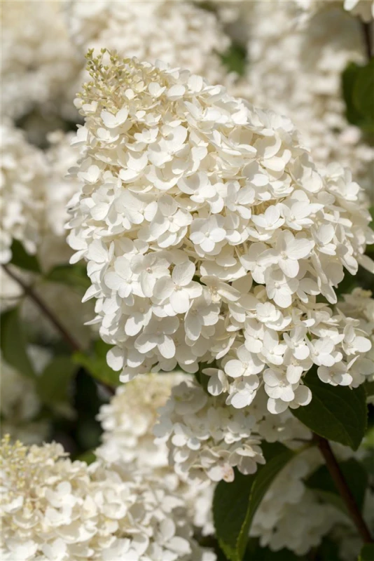 Die weißen Blüten der Rispenhortensie ‚Silver Dollar‘ erscheinen in Rispen von Juli bis September. Diese sind angenehm duftend.