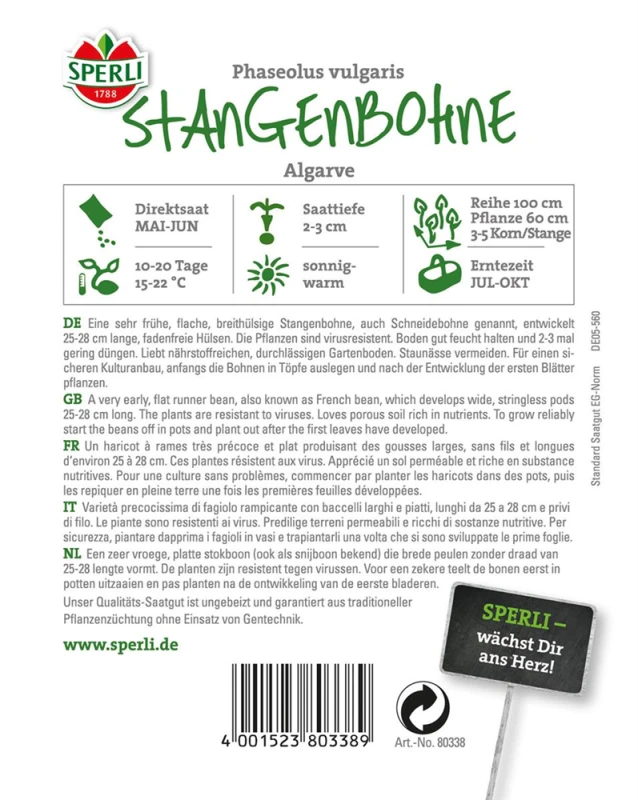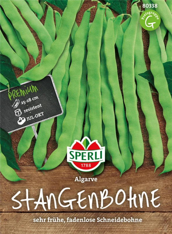 Stangenbohne ‚Algarve‘ ist auch unter diesem Namen bekannt: Stangenbohne.