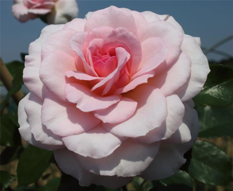 Die hellrosafarbenen, schalenförmigen Blüten sind starkgefüllt und erscheinen von Juni bis Oktober. Diese werden etwa 6 – 8 cm groß und sind angenehm duftend.