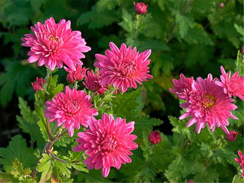 Die Winteraster (Chrysanthemum x grandiflorum) ist eine buschige wintergrüne Staude, die von September bis Oktober dunkelrote, körbchenartige Blüten bildet. An einem sonnigen bis halbschattigen, windgeschützten Standort mit durchlässigem, humosem, sandigem Boden erreicht sie gewöhnlich eine Höhe von ca. 1 m und wird ca. 80 cm breit. Die Winteraster ist gut frostverträglich.